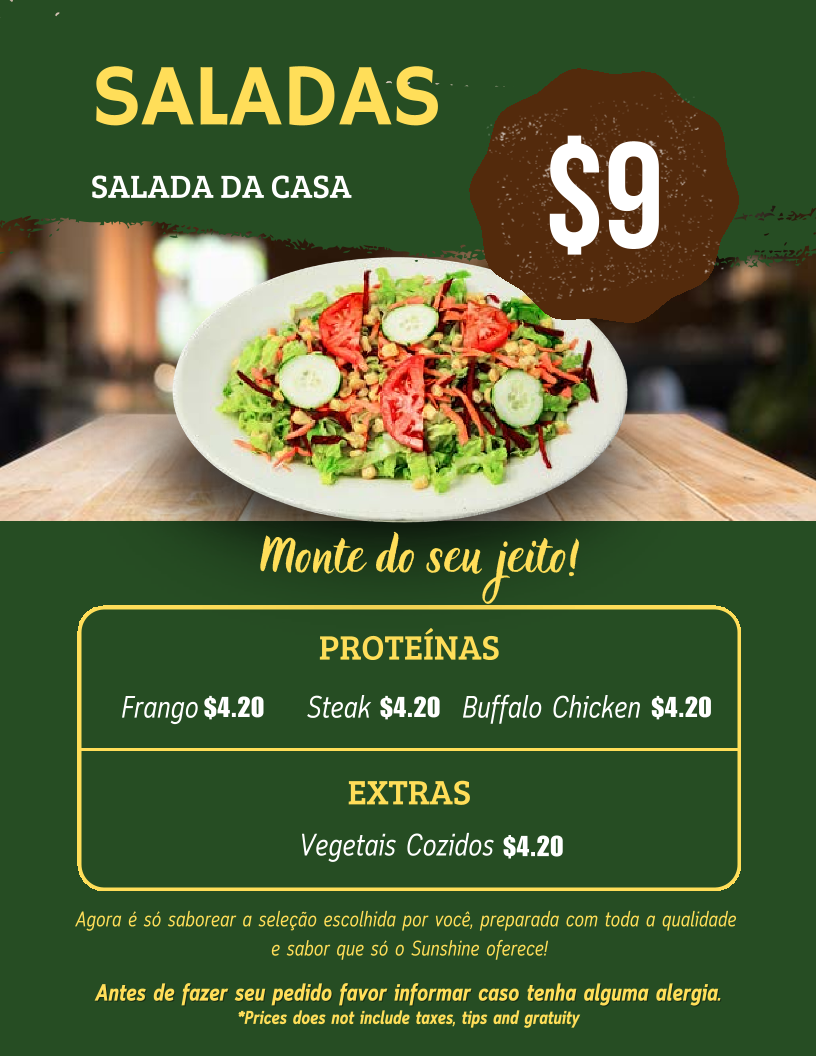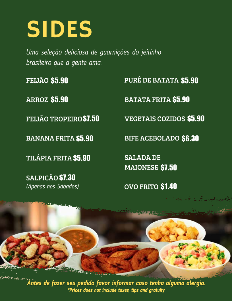 Kids aren’t left out, thanks to the Brasileirinho from the Menu Infantil, and dessert lovers can end on a sweet note with Pudim de Leite, Mousse de Maracujá, or Brazilian chocolate bars like Prestigio and Talento. Overall, Sunshine Brazilian Restaurant’s menu perfectly blends everyday comfort food with authentic Brazilian flair - a must-try for anyone seeking a flavorful, homemade-style dining experience.